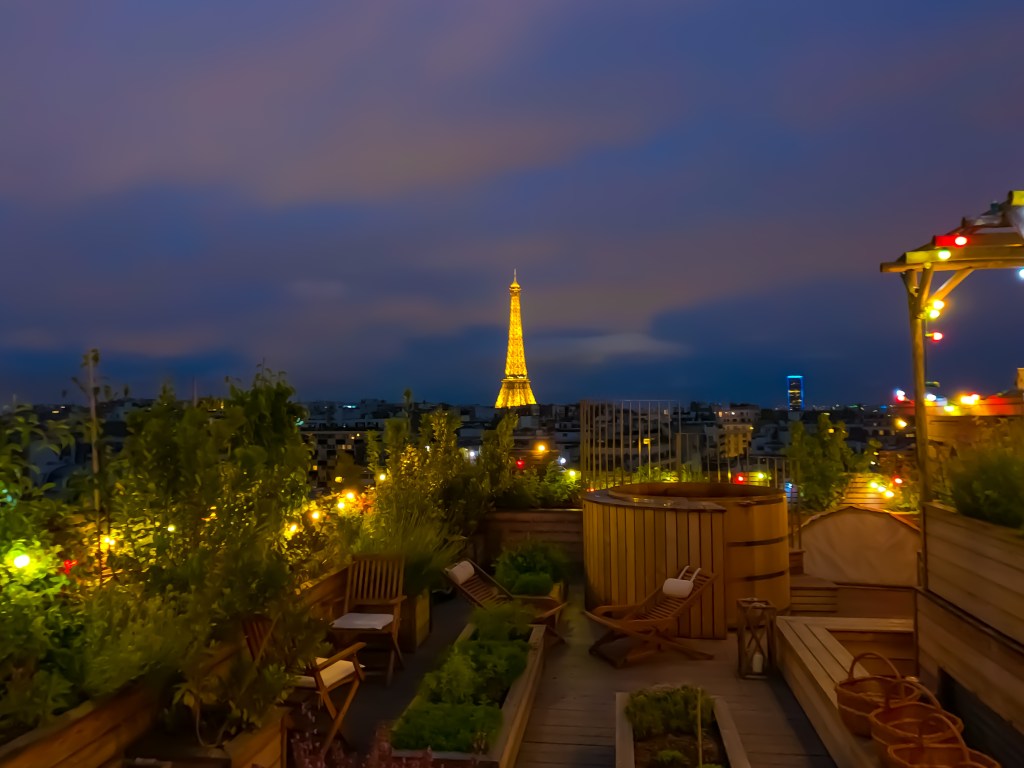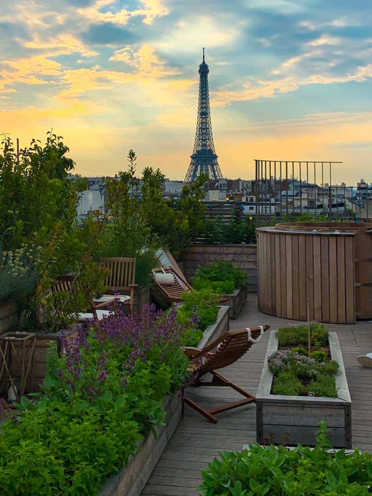 If you can splurge on your hotel stay while visiting Paris, this is one the best hotels in Paris. It has an unbelievable garden on the rooftop with one of the best views of the city and the Eiffel tower. The hotel grants you access to the rooftop with a code if you are staying in one of their suites, (or if you’re really nice to the front desk team) otherwise you can schedule a night on the rooftop, picnic style, where you get a basket of food served with wine or champagne. They only do this during certain months of the year, but it’s a must do if you are here during a time they offer it. Their rooftop garden actually inspired us for our own urban oasis in NYC.